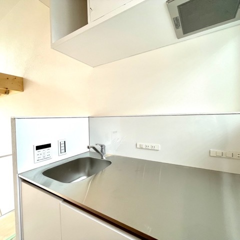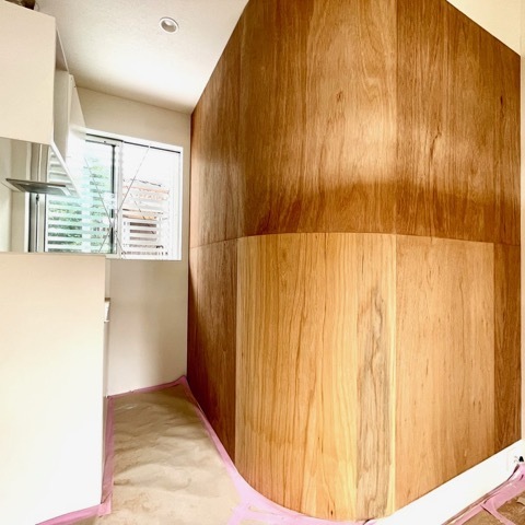 アールの合板壁、キッチンの段差など、空間の使い方もおもしろいです!
