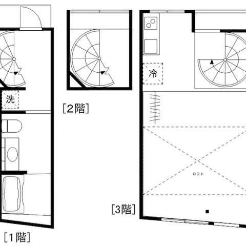 メインの居住スペースは奇数部屋が2階、偶数部屋が3階と分かれています。