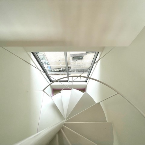 メインの居住スペースは3階ですが、1階から階段をぐるぐる上っていきます。