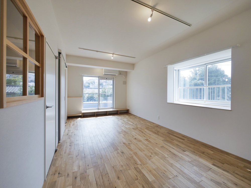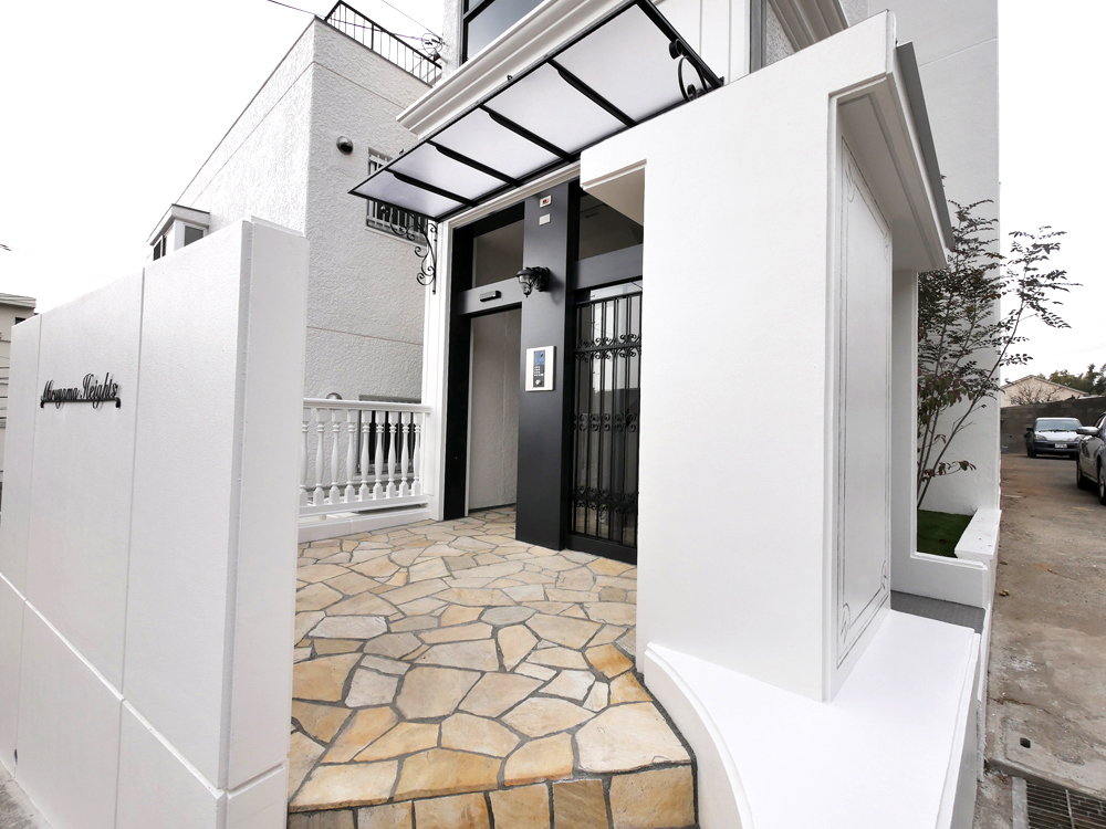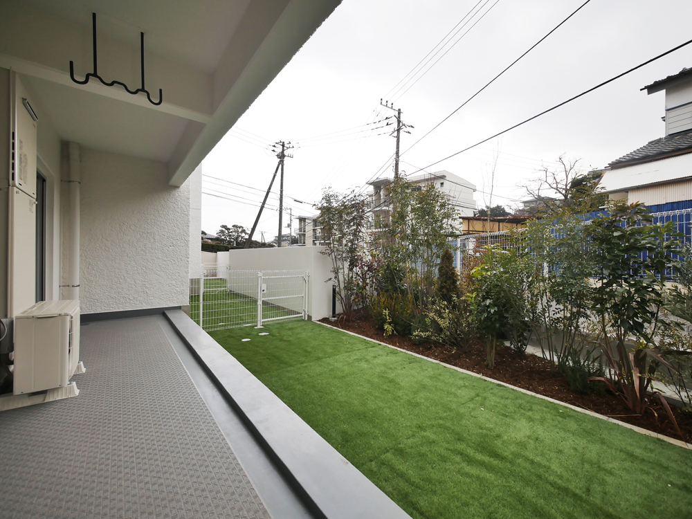 また、内装デザインのみならず、ペアガラスサッシ、気密性の高い玄関ドア、オートロックの導入、1F専有庭の植栽計画により 新築並みの快適且つ、セキュリティにも配慮した集合住宅に生まれ変わりました。