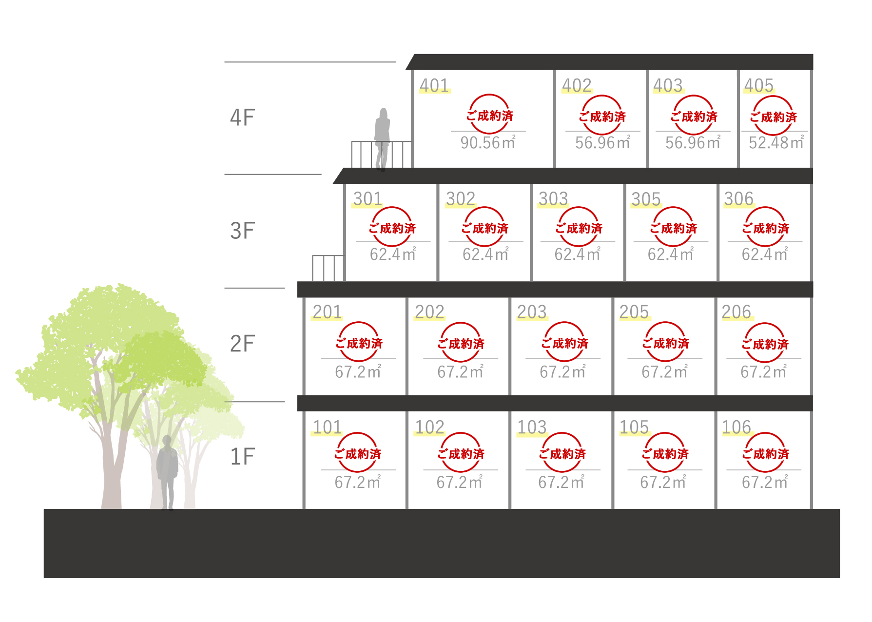 妙蓮寺という落ち着いた立地、戸当たり60m2以上のゆとりある空間を活かし、 ベビーカーが収納できる広い土間や造作仕様の書斎やWICも兼ねるDEN、窓際で日向ぼっこを楽しめる腰掛等、 子育て世帯やファミリー層向けの住み心地を追求した空間を、無垢材、タイル、アイアンといった質感の高い素材で仕上げています。